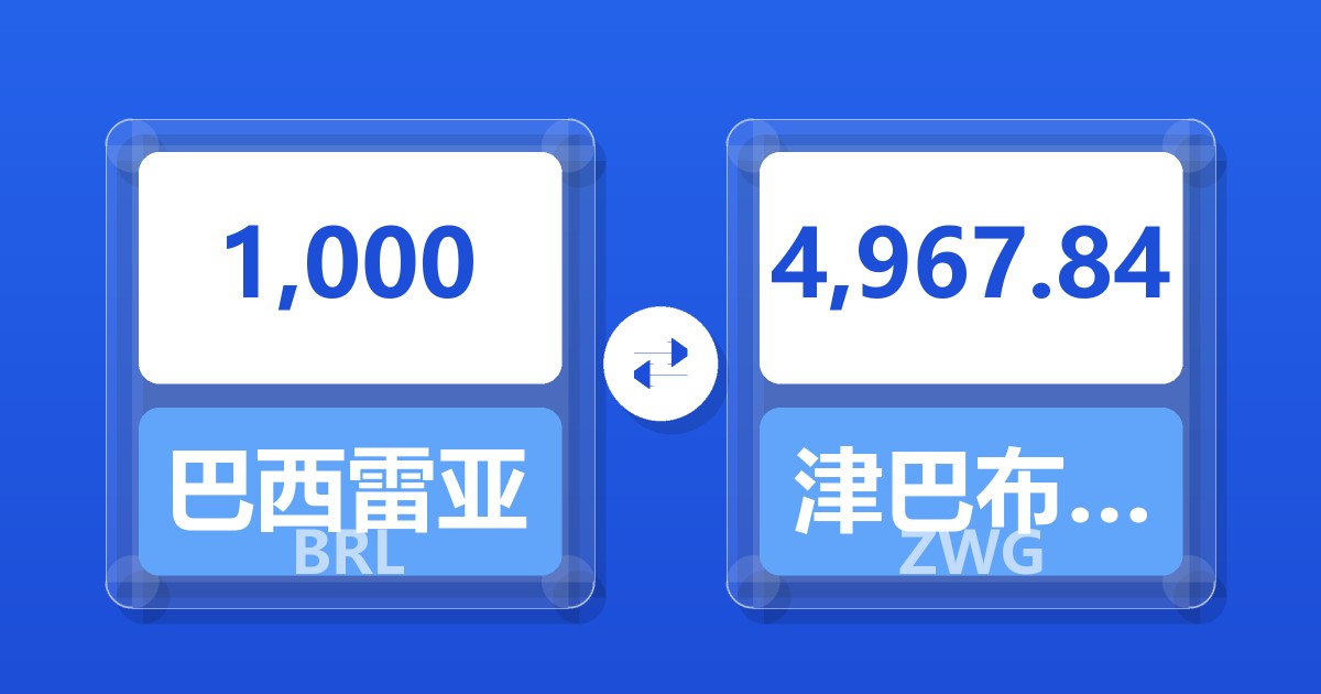 1,000 巴西雷亚尔 (BRL) = 4,945.99 津巴布韦元(新) (ZWG)