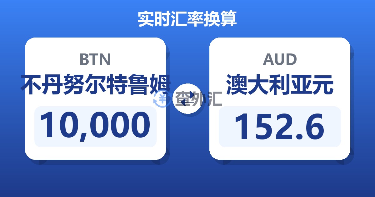 10,000 不丹努尔特鲁姆 (BTN) = 153.33 澳大利亚元 (AUD)