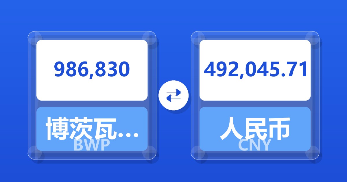 986,830 博茨瓦纳普拉 (BWP) = 494,140.66 人民币 (CNY)
