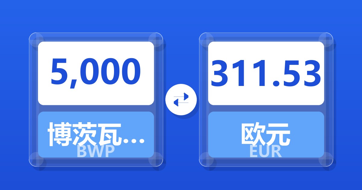 5,000 博茨瓦纳普拉 (BWP) = 313.31 欧元 (EUR)
