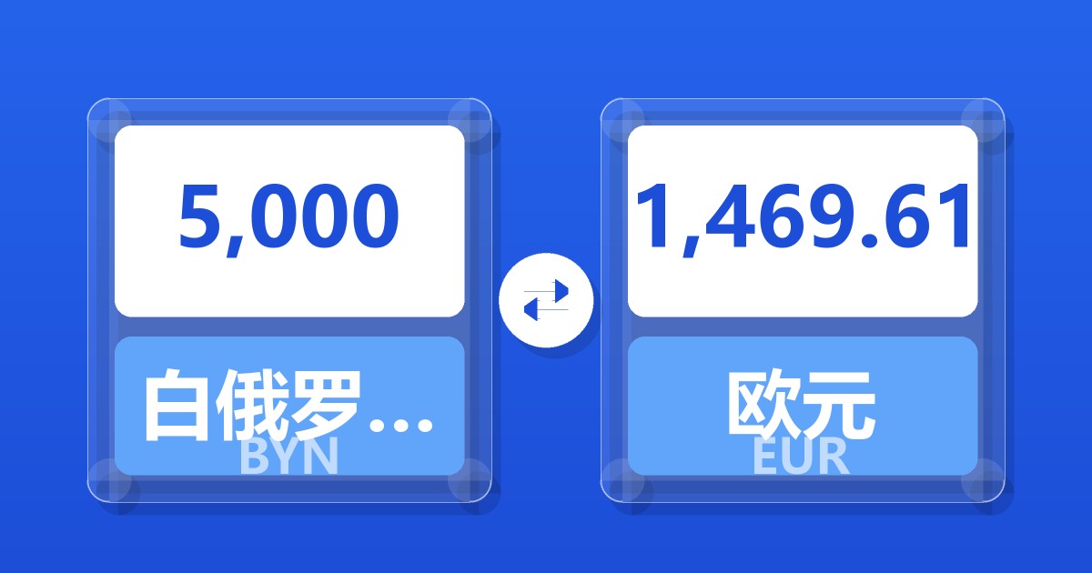 5,000 白俄罗斯卢布 (BYN) = 1,468.00 欧元 (EUR)