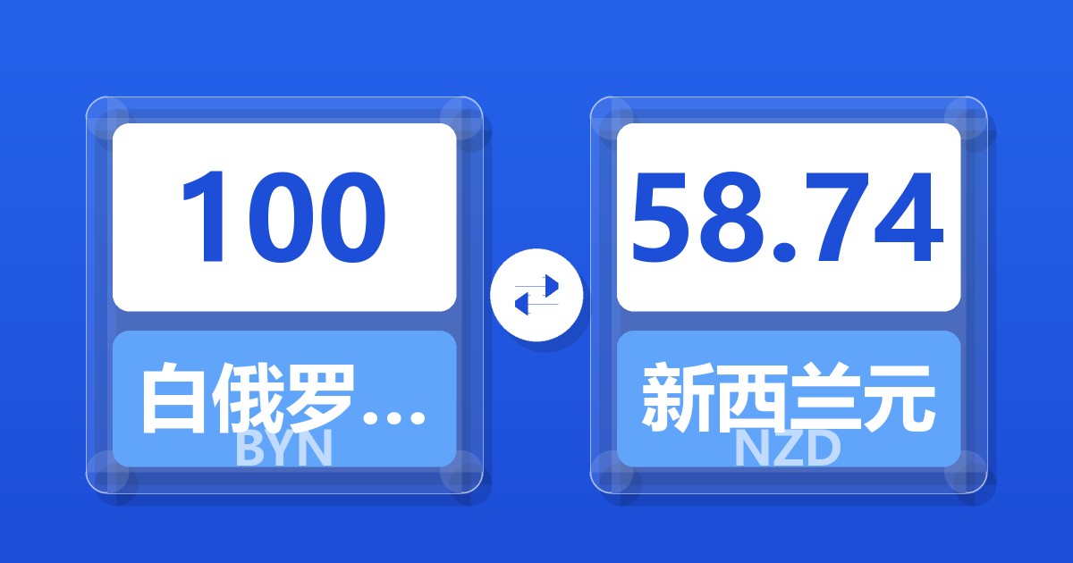 100 白俄罗斯卢布 (BYN) = 58.84 新西兰元 (NZD)