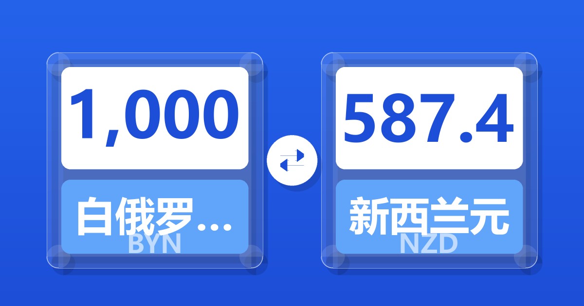 1,000 白俄罗斯卢布 (BYN) = 588.36 新西兰元 (NZD)