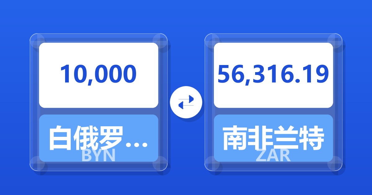 10,000 白俄罗斯卢布 (BYN) = 56,220.99 南非兰特 (ZAR)