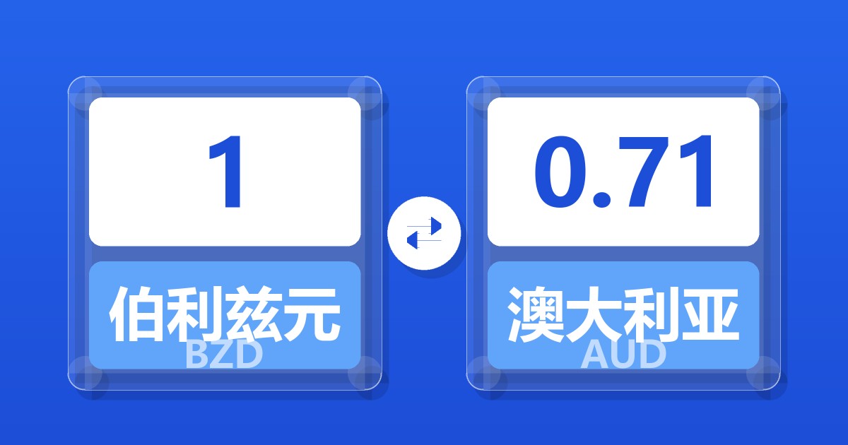 1 伯利兹元 (BZD) = 0.71 澳大利亚元 (AUD)