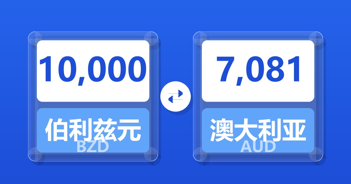 10,000 伯利兹元 (BZD) = 7,097.00 澳大利亚元 (AUD)