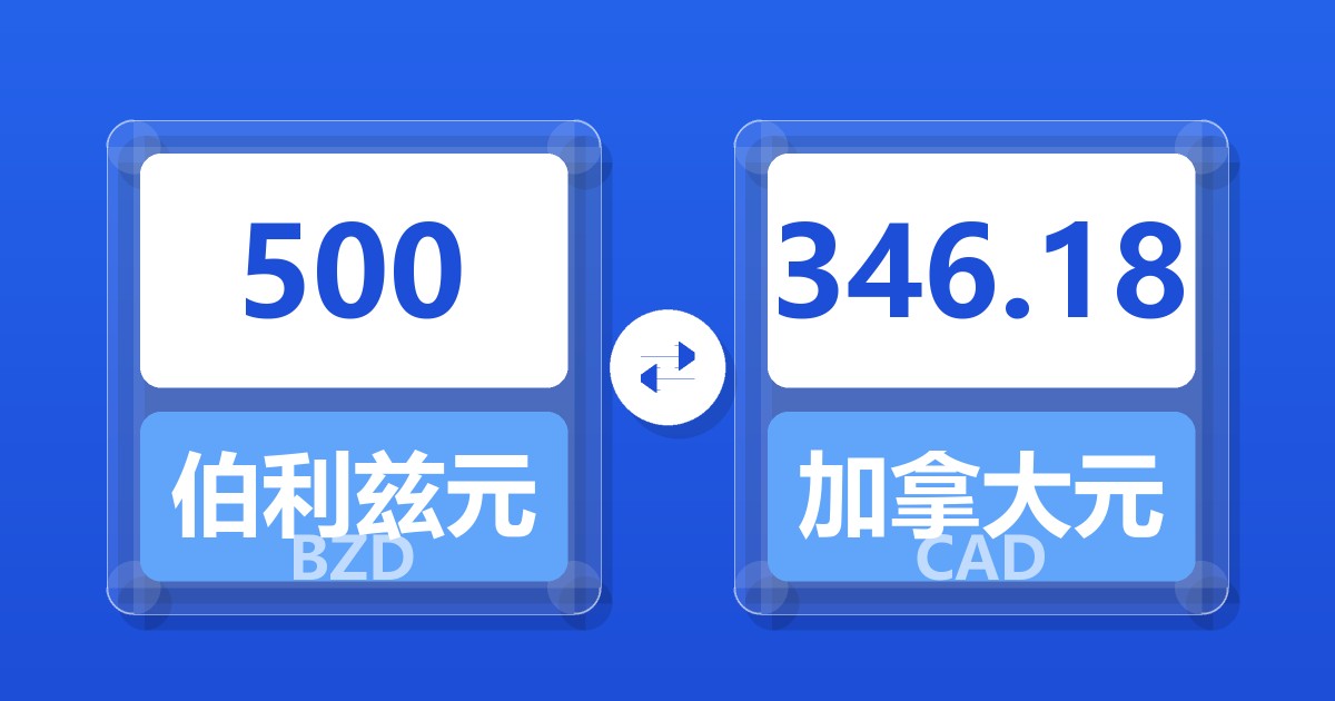 500 伯利兹元 (BZD) = 346.18 加拿大元 (CAD)