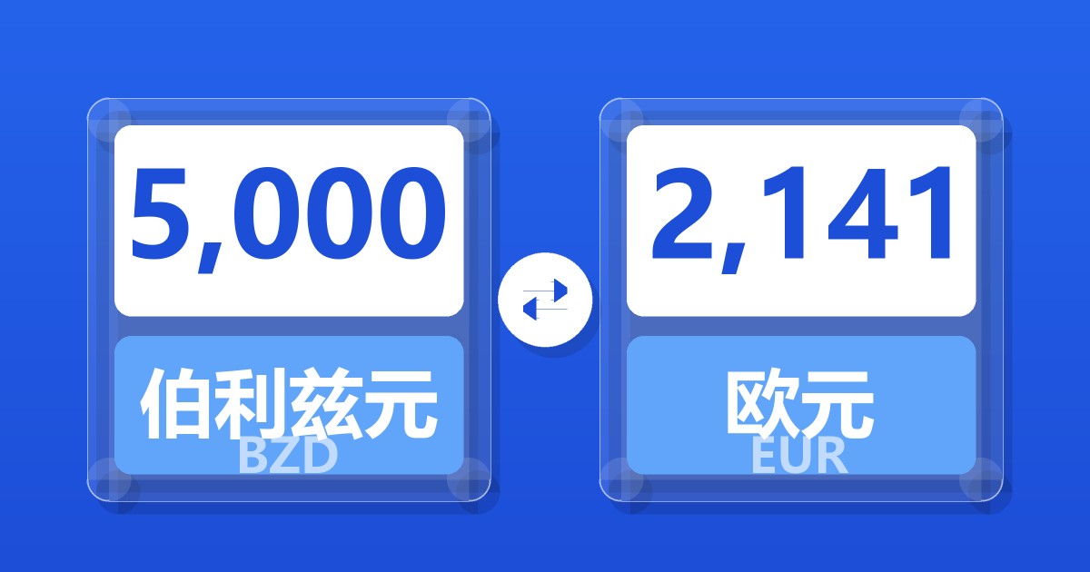 5,000 伯利兹元 (BZD) = 2,141.00 欧元 (EUR)
