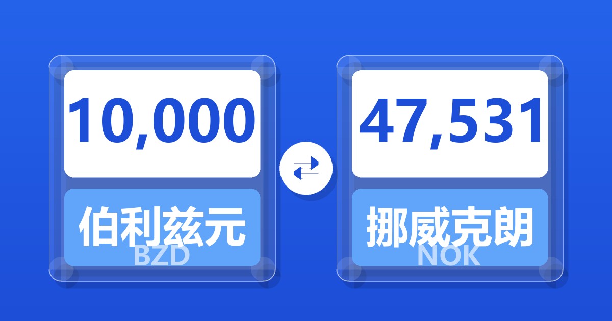 10,000 伯利兹元 (BZD) = 47,823.00 挪威克朗 (NOK)