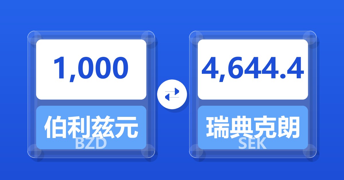 1,000 伯利兹元 (BZD) = 4,651.65 瑞典克朗 (SEK)