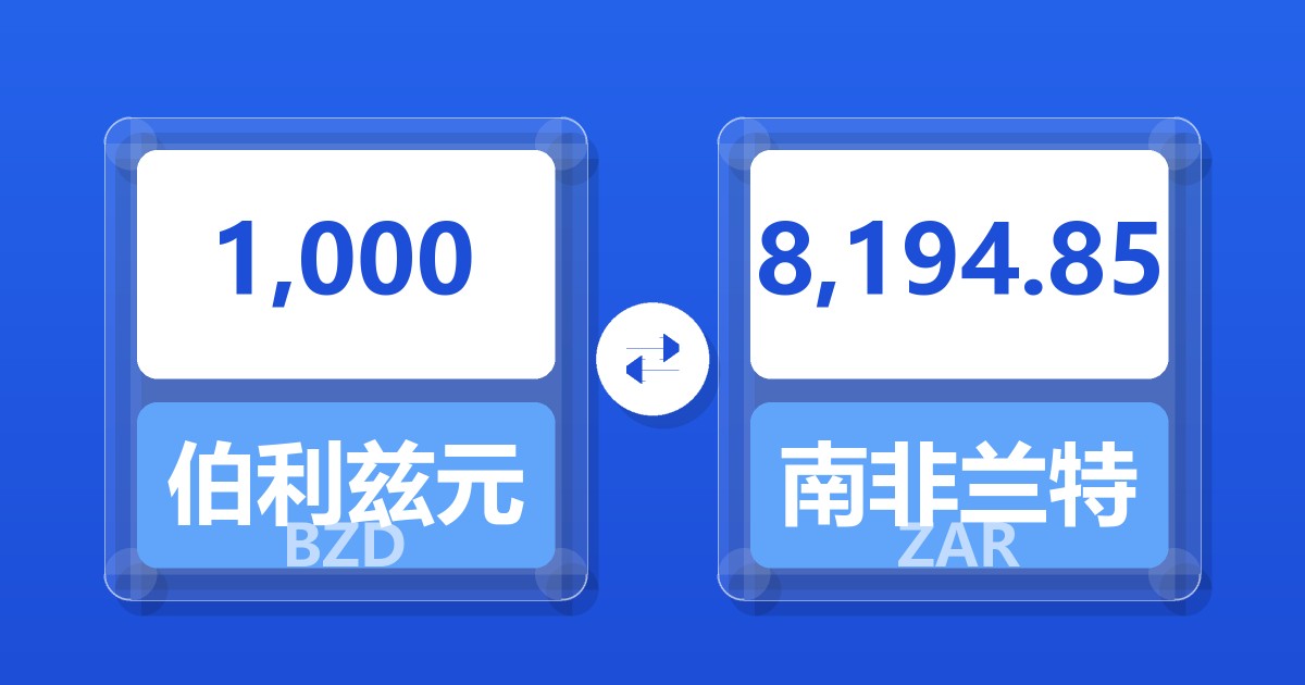 1,000 伯利兹元 (BZD) = 8,199.55 南非兰特 (ZAR)