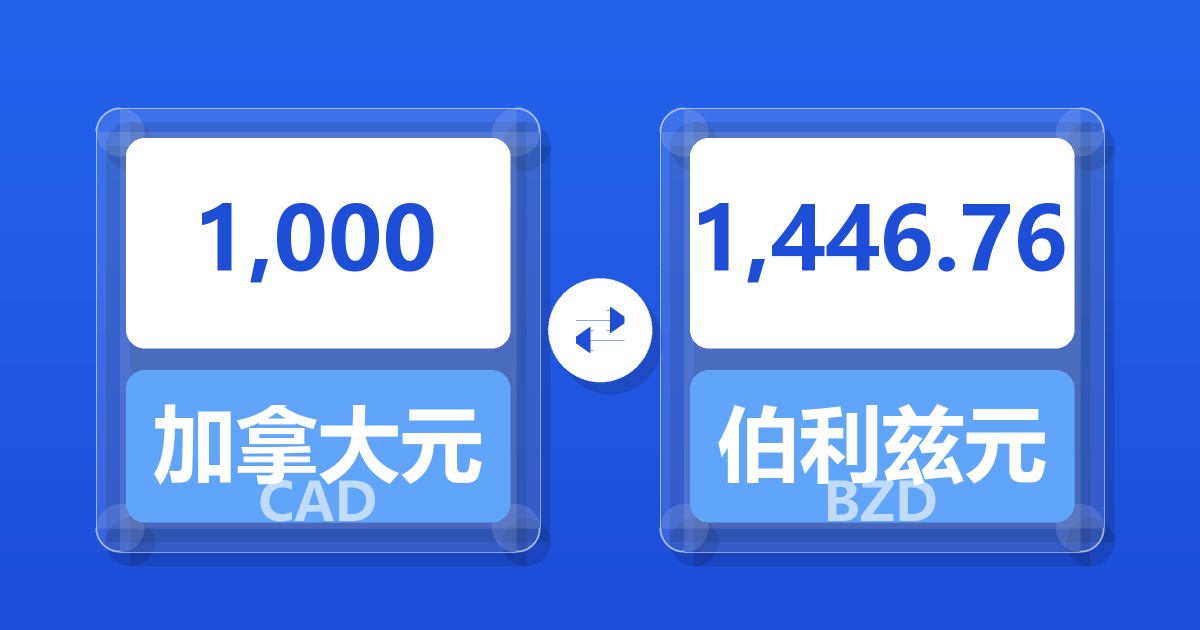 1,000 加拿大元 (CAD) = 1,444.36 伯利兹元 (BZD)