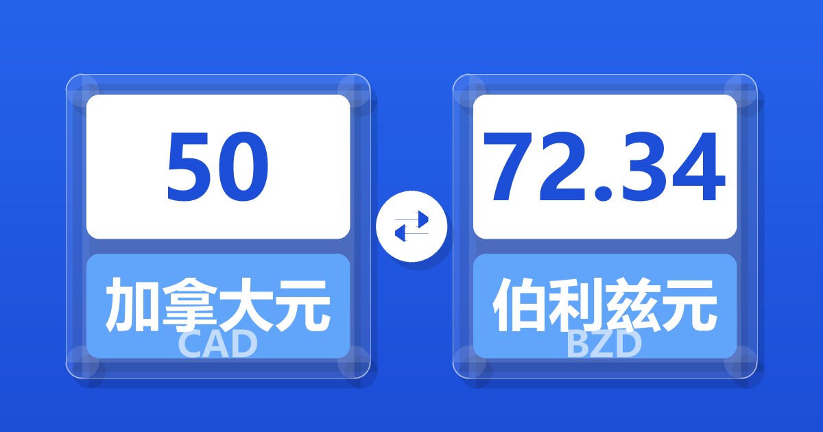 50 加拿大元 (CAD) = 72.22 伯利兹元 (BZD)