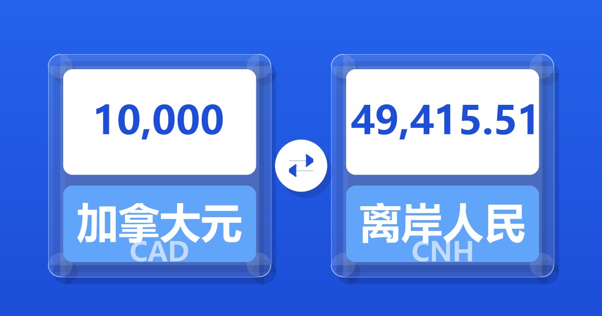 10,000 加拿大元 (CAD) = 49,333.43 离岸人民币 (CNH)