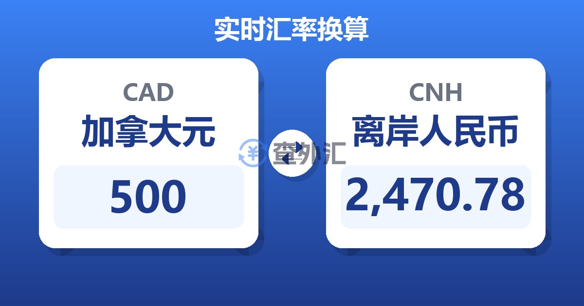 500 加拿大元 (CAD) = 2,466.67 离岸人民币 (CNH)