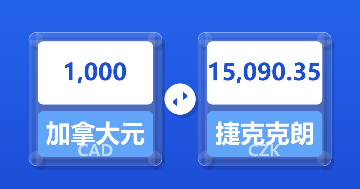 1,000 加拿大元 (CAD) = 15,089.62 捷克克朗 (CZK)