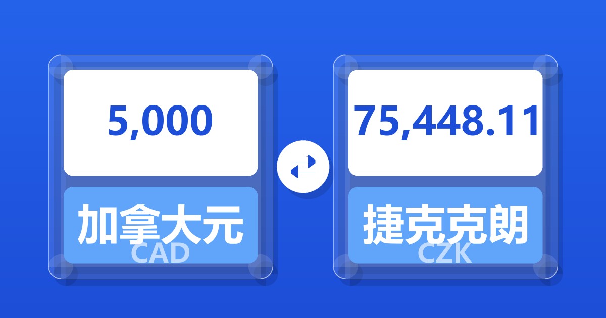 5,000 加拿大元 (CAD) = 75,448.11 捷克克朗 (CZK)