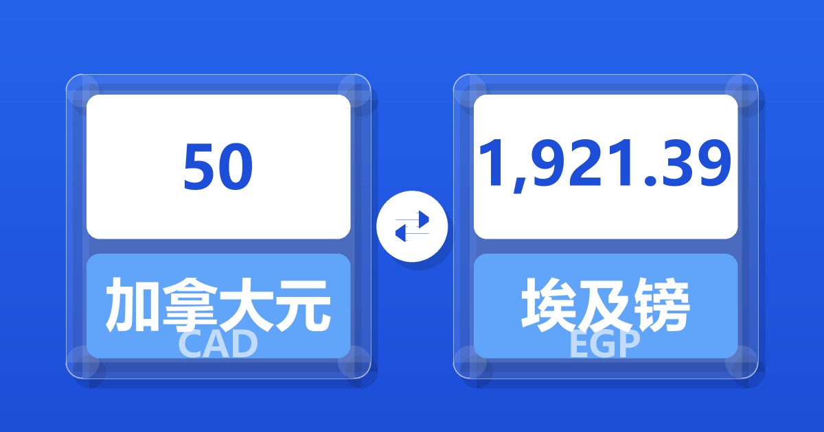 50 加拿大元 (CAD) = 1,925.34 埃及镑 (EGP)