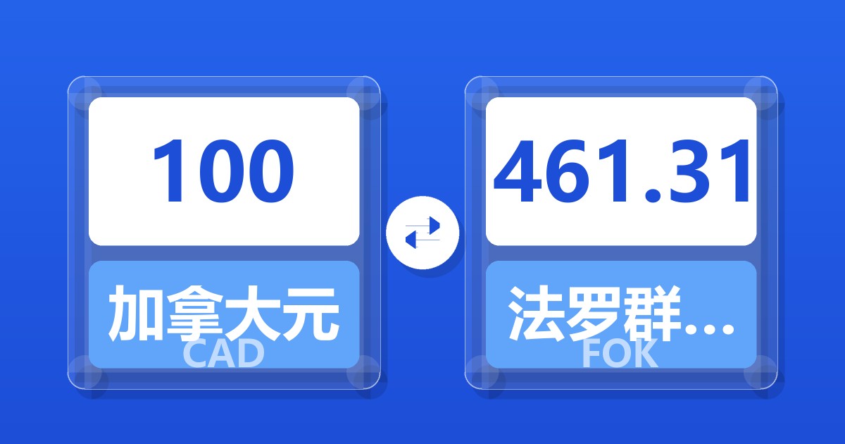 100 加拿大元 (CAD) = 461.31 法罗群岛克朗 (FOK)