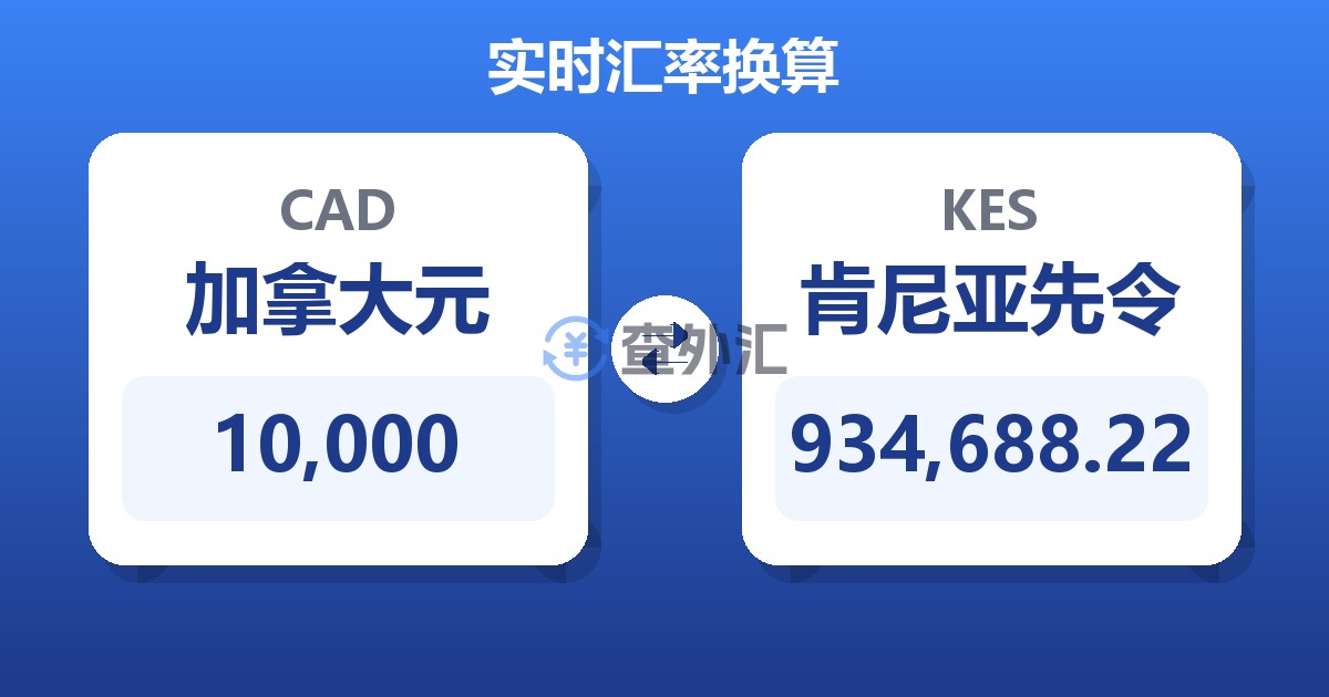 10,000 加拿大元 (CAD) = 935,803.42 肯尼亚先令 (KES)