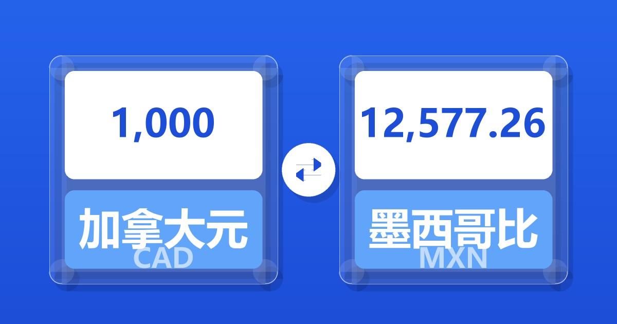 1,000 加拿大元 (CAD) = 12,591.39 墨西哥比索 (MXN)