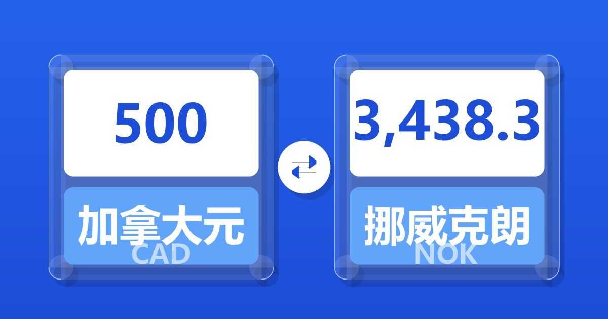 500 加拿大元 (CAD) = 3,453.67 挪威克朗 (NOK)