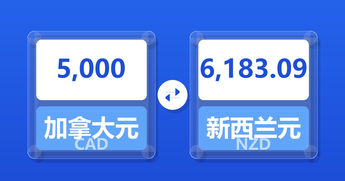 5,000 加拿大元 (CAD) = 6,197.01 新西兰元 (NZD)