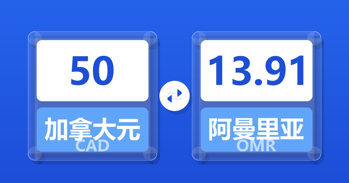 50 加拿大元 (CAD) = 13.88 阿曼里亚尔 (OMR)