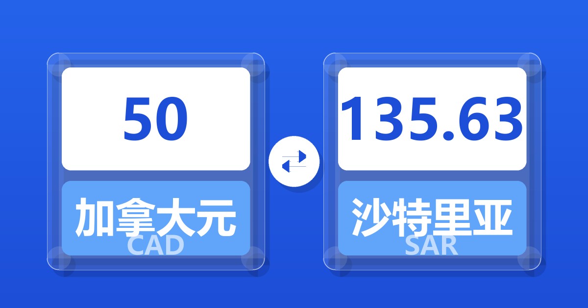 50 加拿大元 (CAD) = 135.41 沙特里亚尔 (SAR)