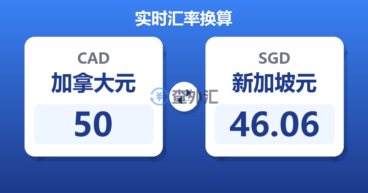 50 加拿大元 (CAD) = 46.01 新加坡元 (SGD)