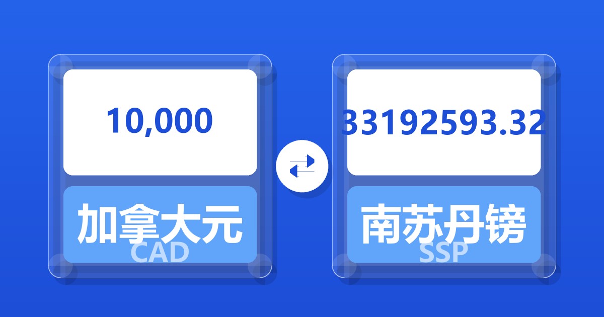 10,000 加拿大元 (CAD) = 33,126,393.44 南苏丹镑 (SSP)