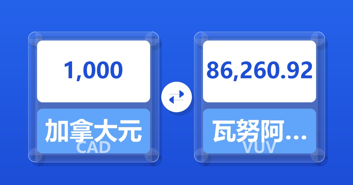 1,000 加拿大元 (CAD) = 86,768.25 瓦努阿图瓦图 (VUV)