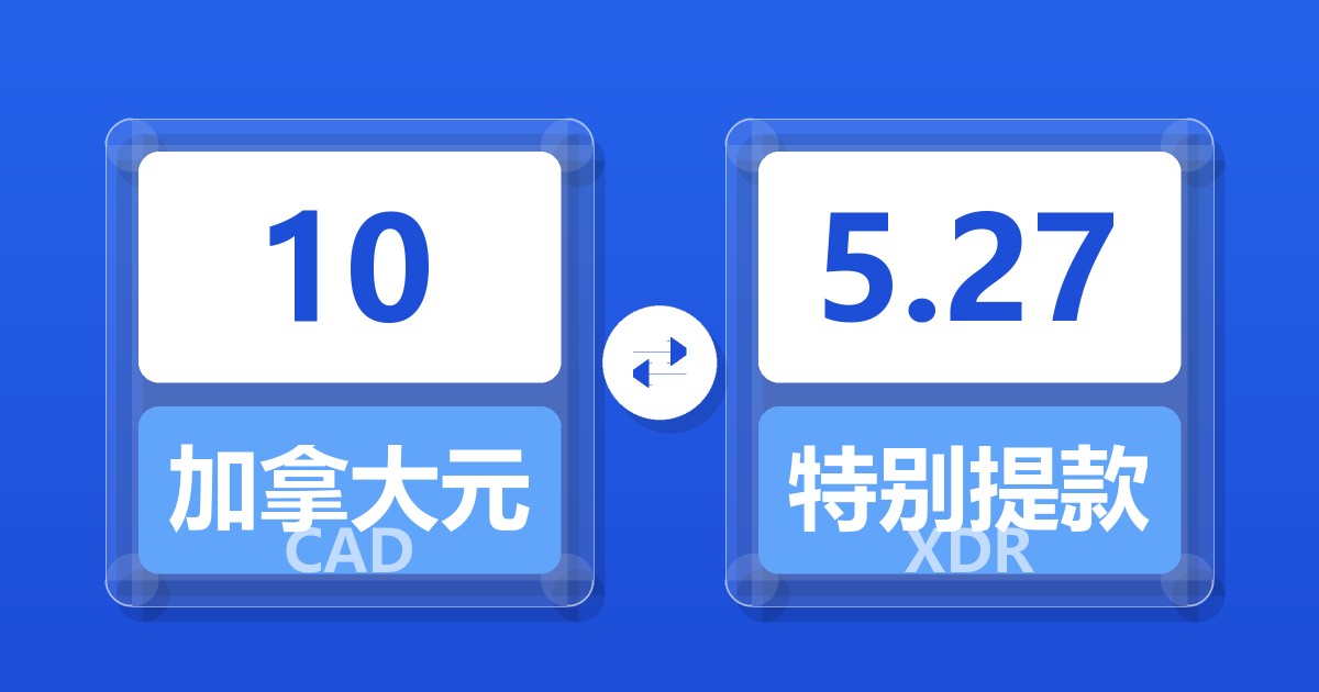 10 加拿大元 (CAD) = 5.27 特别提款权 (XDR)