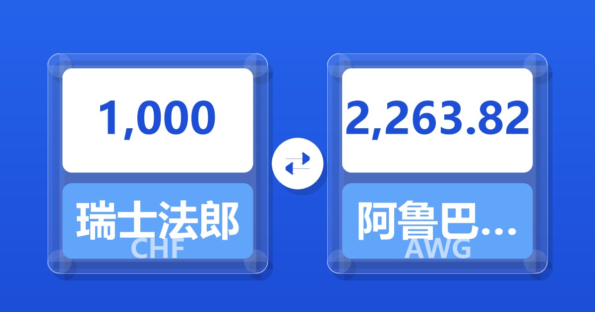 1,000 瑞士法郎 (CHF) = 2,264.39 阿鲁巴弗罗林 (AWG)