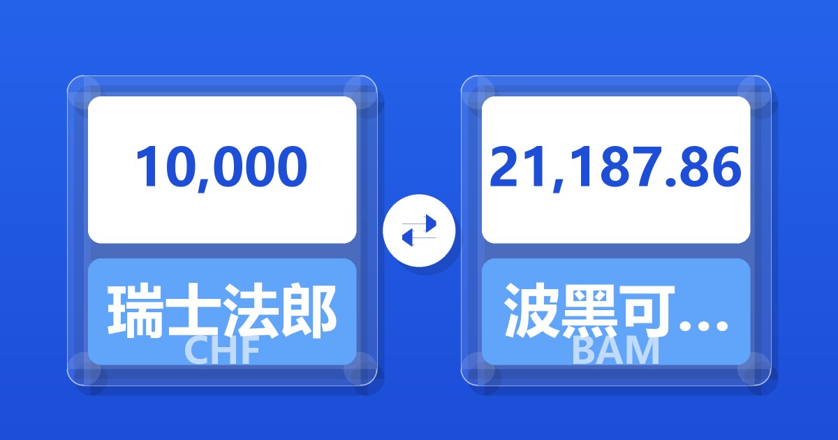 10,000 瑞士法郎 (CHF) = 21,187.86 波黑可兑换马克 (BAM)