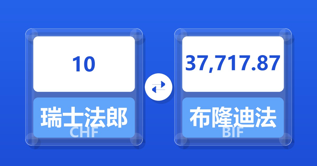 10 瑞士法郎 (CHF) = 37,717.87 布隆迪法郎 (BIF)