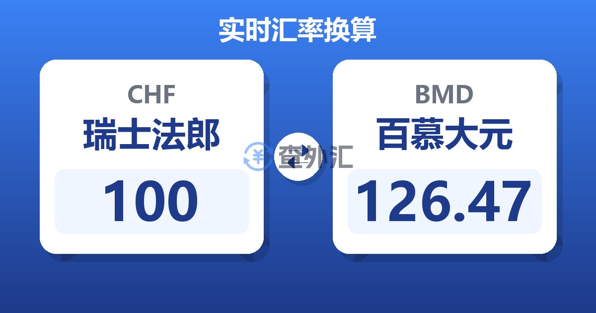 100 瑞士法郎 (CHF) = 126.50 百慕大元 (BMD)
