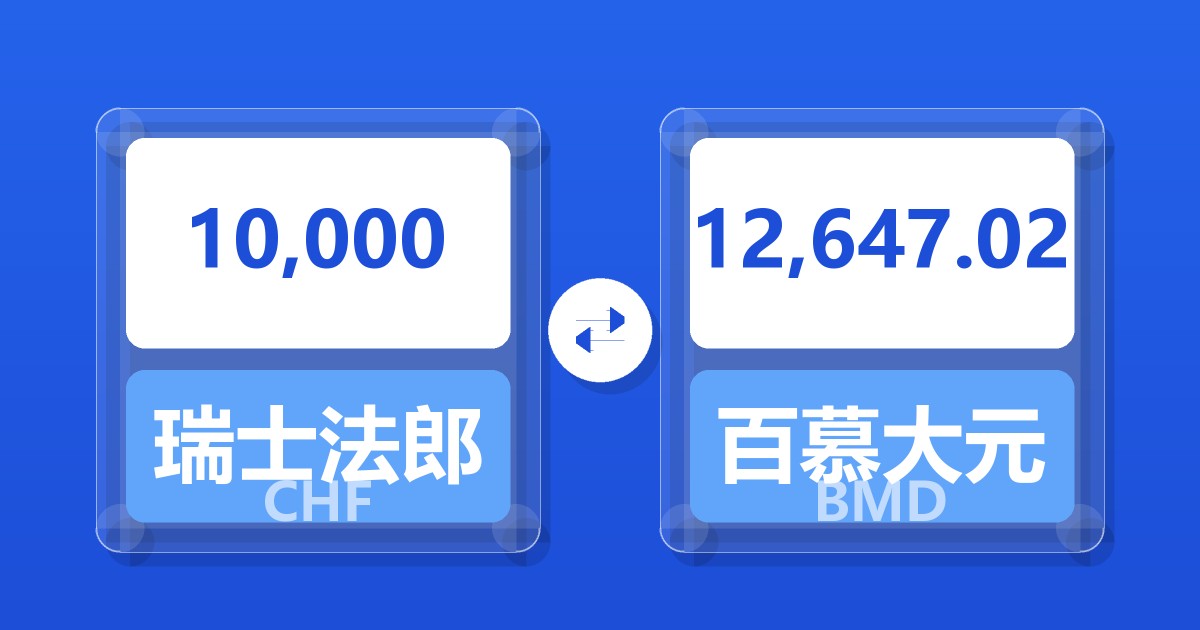10,000 瑞士法郎 (CHF) = 12,650.22 百慕大元 (BMD)