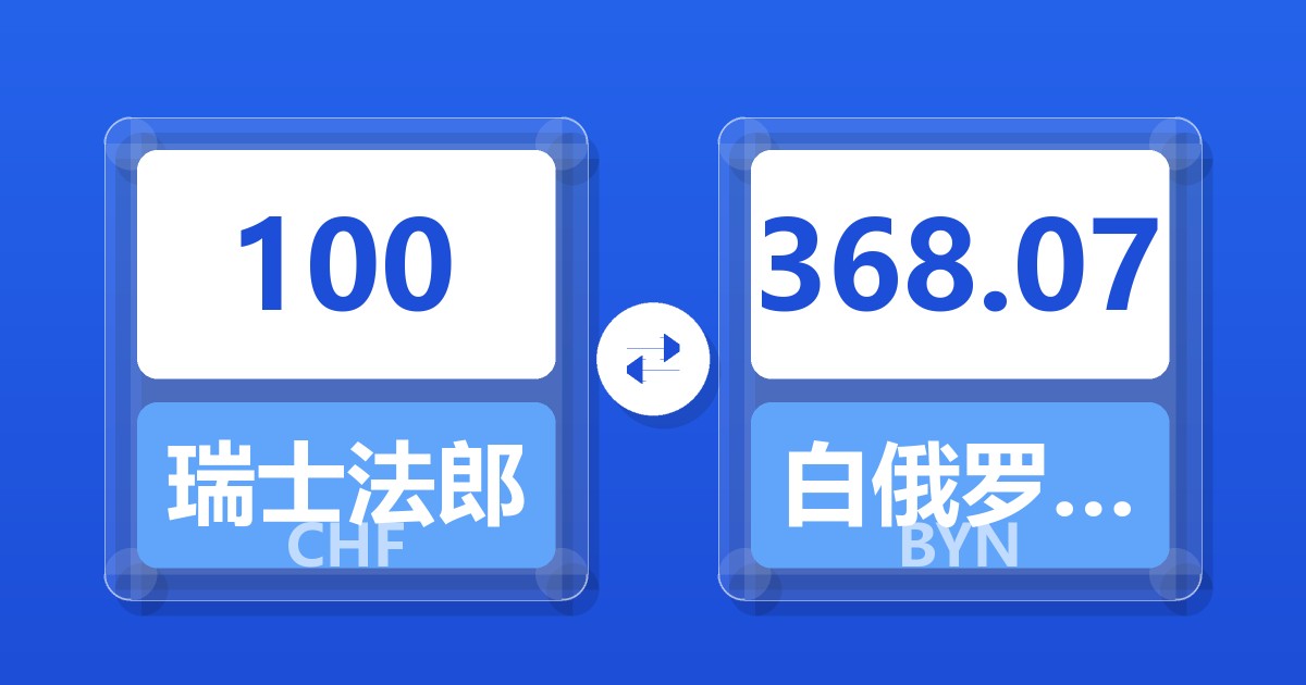 100 瑞士法郎 (CHF) = 368.99 白俄罗斯卢布 (BYN)