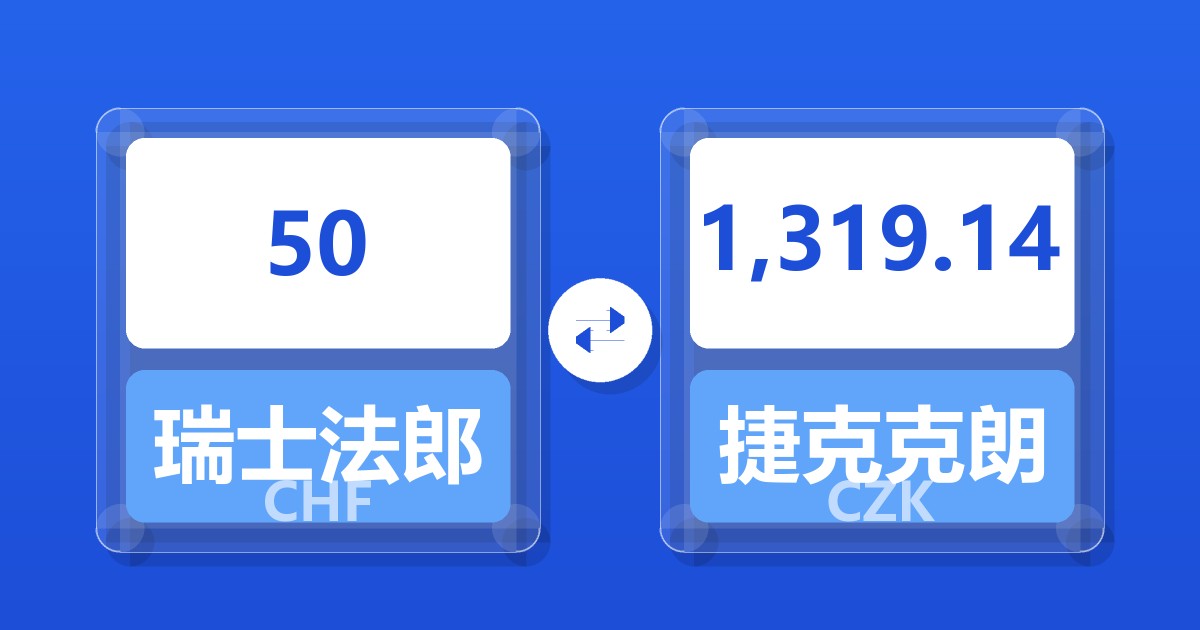 50 瑞士法郎 (CHF) = 1,321.61 捷克克朗 (CZK)