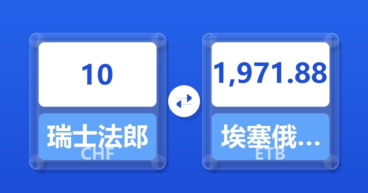 10 瑞士法郎 (CHF) = 1,977.51 埃塞俄比亚比尔 (ETB)