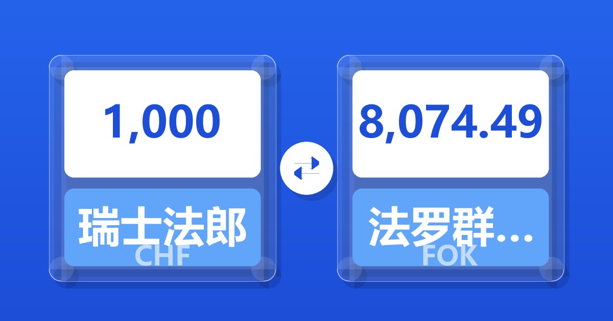 1,000 瑞士法郎 (CHF) = 8,080.58 法罗群岛克朗 (FOK)