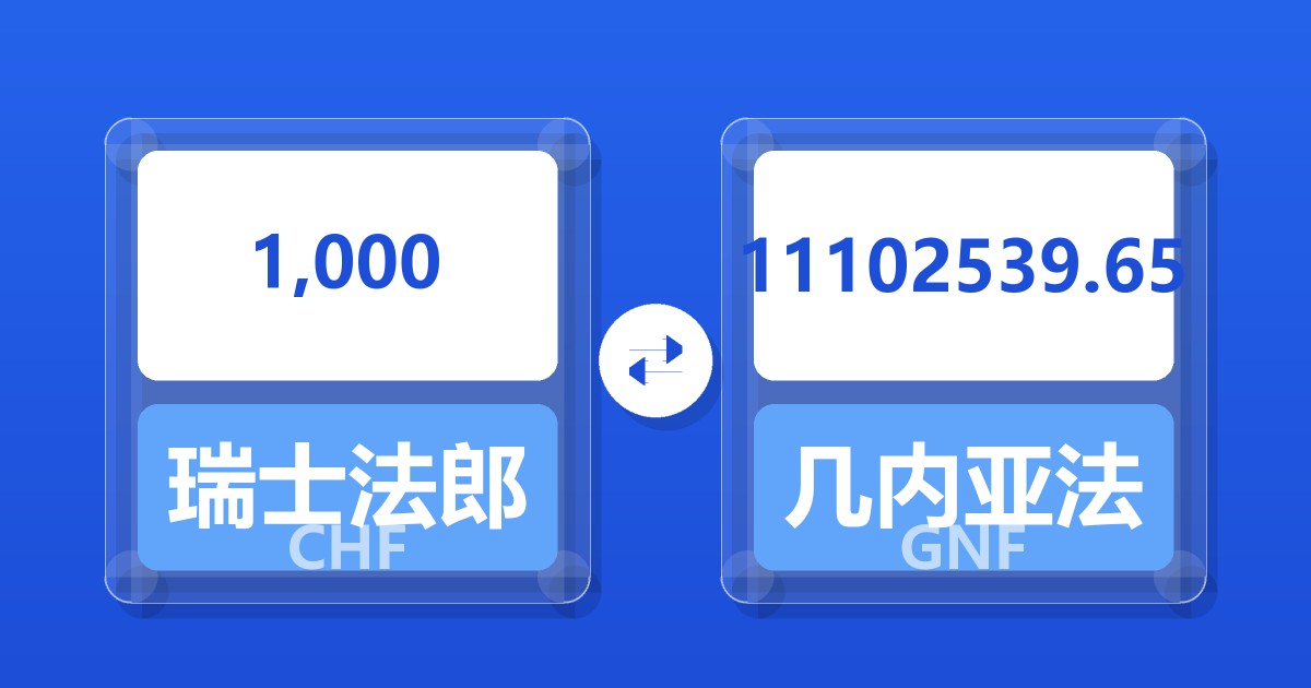1,000 瑞士法郎 (CHF) = 11,116,286.65 几内亚法郎 (GNF)