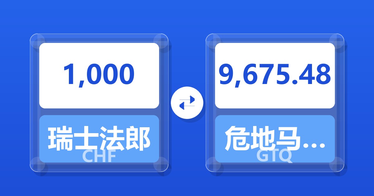 1,000 瑞士法郎 (CHF) = 9,679.70 危地马拉格查尔 (GTQ)