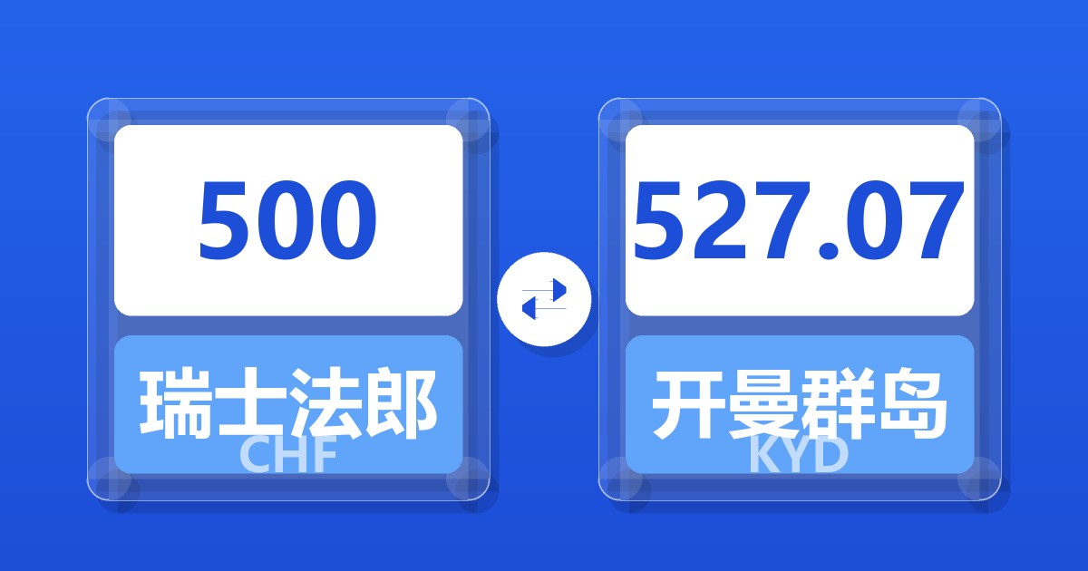 500 瑞士法郎 (CHF) = 527.07 开曼群岛元 (KYD)