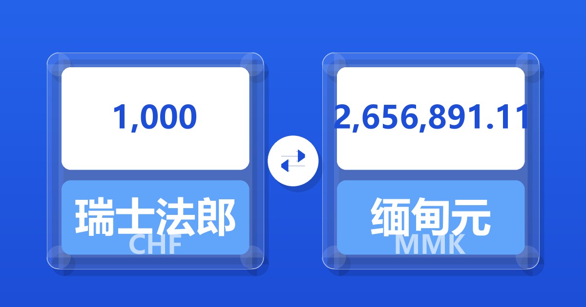 1,000 瑞士法郎 (CHF) = 2,658,077.17 缅甸元 (MMK)