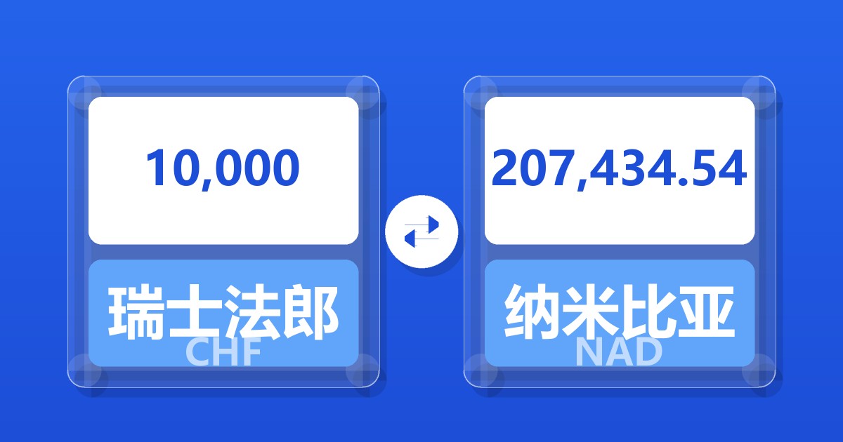 10,000 瑞士法郎 (CHF) = 207,434.54 纳米比亚元 (NAD)