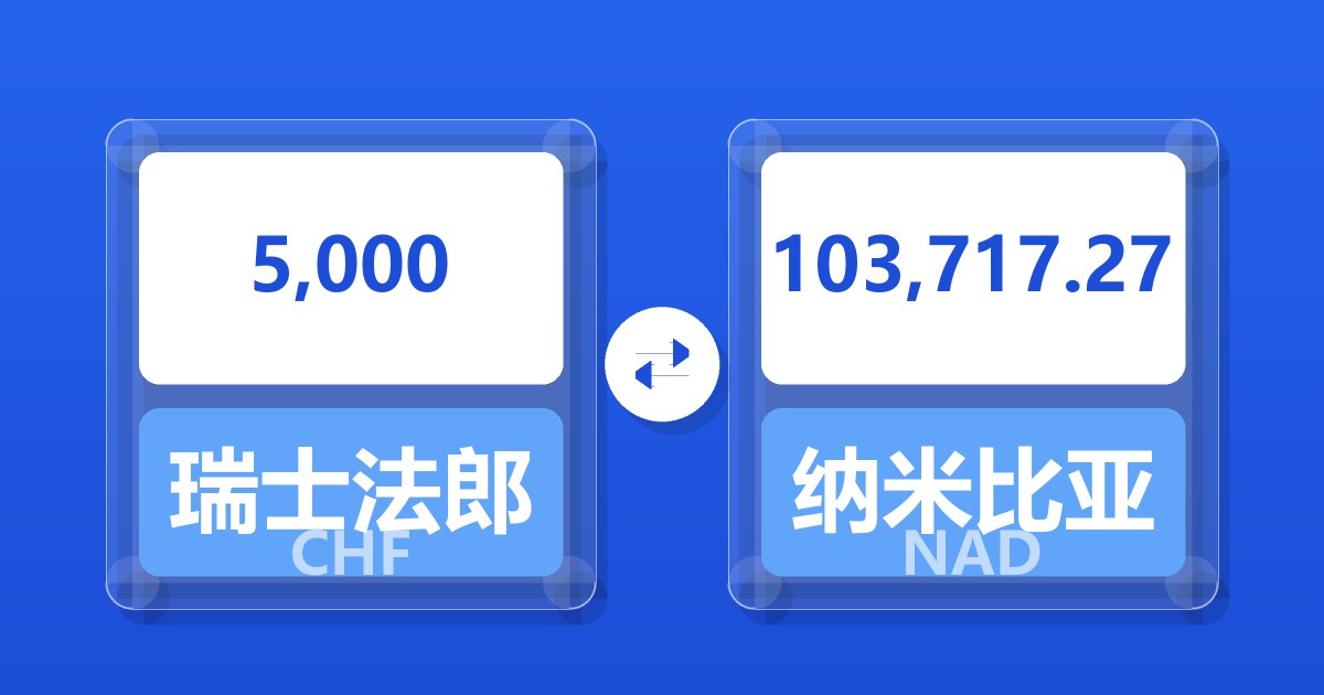 5,000 瑞士法郎 (CHF) = 103,717.27 纳米比亚元 (NAD)