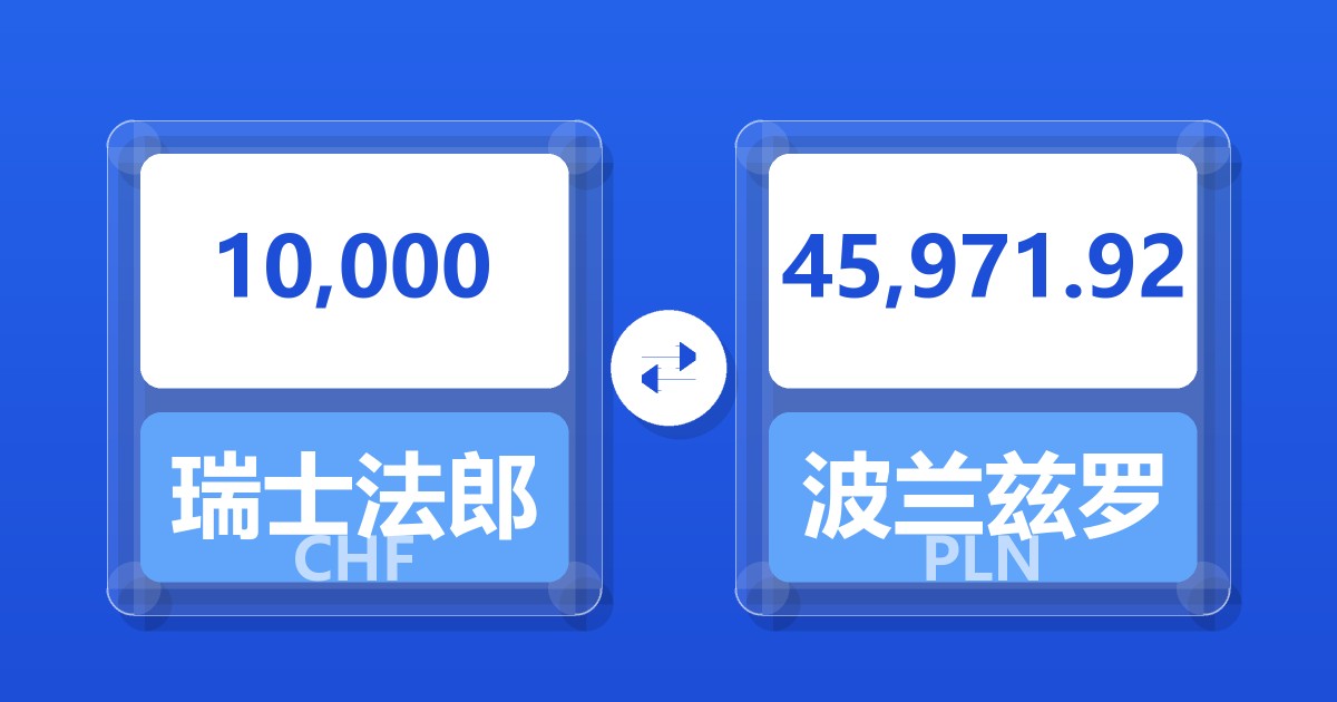 10,000 瑞士法郎 (CHF) = 46,099.94 波兰兹罗提 (PLN)