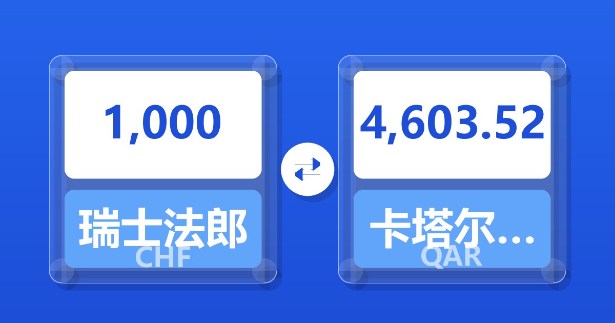 1,000 瑞士法郎 (CHF) = 4,604.68 卡塔尔里亚尔 (QAR)